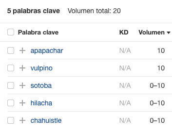 Como puedes ver, en esta ocasión, su puntuación de KD es baja. Esto quiere decir que incluso un sitio web nuevo tiene la posibilidad de posicionarse en el top 10 de resultados de búsqueda y recibir unos pocos usuarios de esas palabras clave.