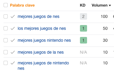 Ahora vamos a ver otro tipo diferente de palabras clave long-tail: “mejores juegos nes”,