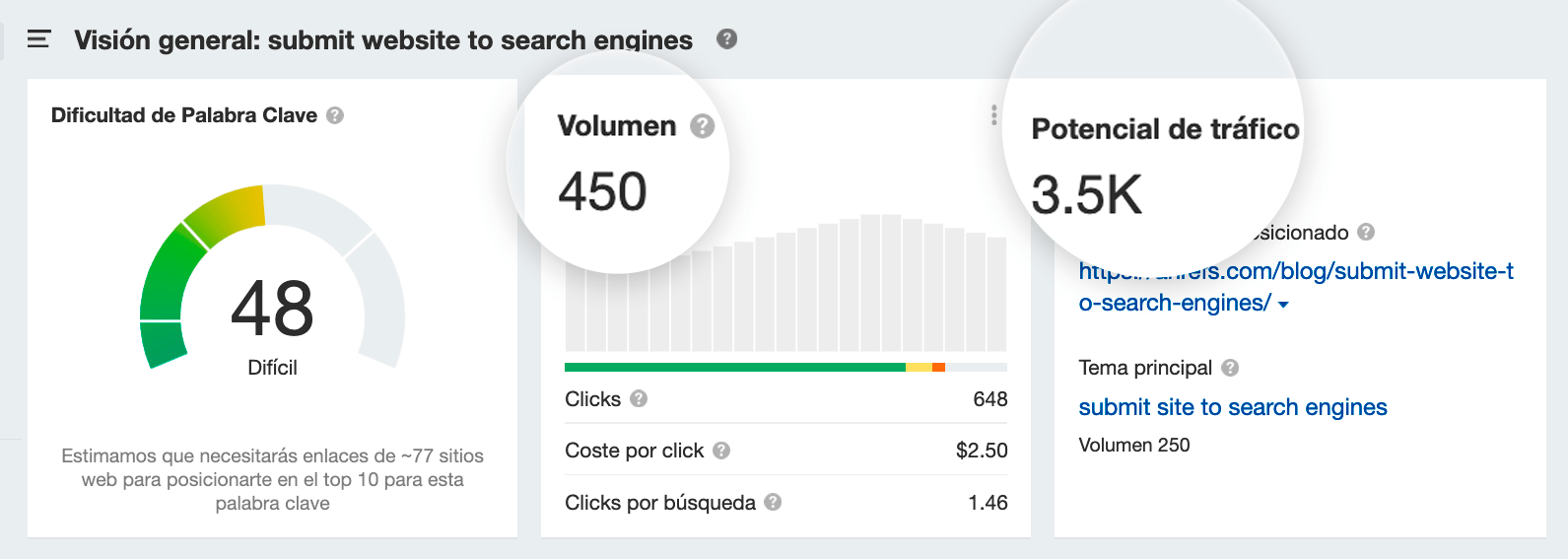 El principal uso de la métrica de volumen de búsqueda de palabras clave en SEO es estimar el tráfico de búsqueda orgánico potencial que tu página puede obtener si se posiciona en una palabra clave, ¿verdad?