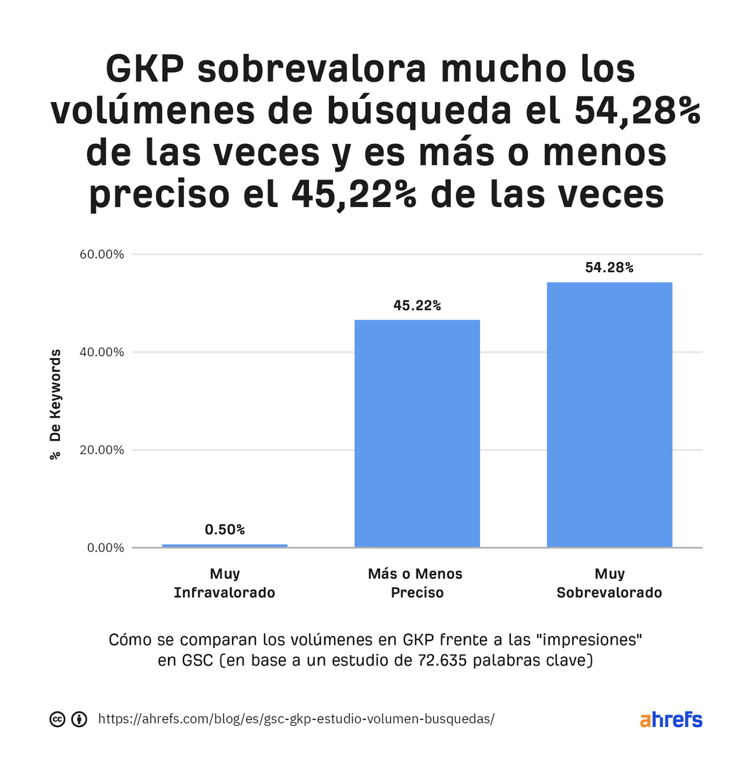 Esta “desagrupación” hace que los volúmenes de búsqueda de Ahrefs sean un poco más precisos que los del GKP. No obstante, nuestros volúmenes de búsqueda siguen siendo sólo estimaciones y no valores exactos, algo que a muchos de nuestros usuarios les encantará ver.