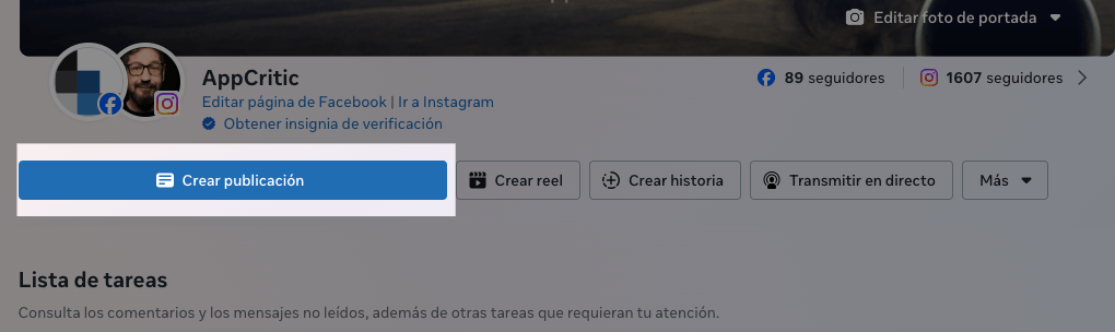 La forma más fácil es pulsar en “Nueva publicación” en la esquina superior derecha: