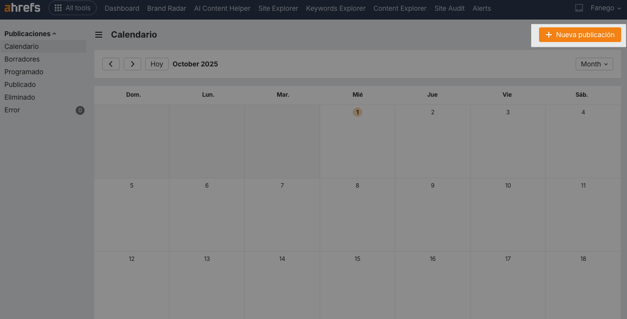 Y si necesitas más control, existen herramientas externas como Ahrefs Social Media Manager, que te permite gestionar todo tu contenido en redes sociales desde un único sitio, unificando un calendario con todas tus páginas y perfiles de LinkedIn, Twitter, páginas de Facebook o Instagram.