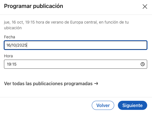Desde 2022/2023, LinkedIn permite programar publicaciones de forma nativa. Es una función básica, pero suficiente para muchas personas.