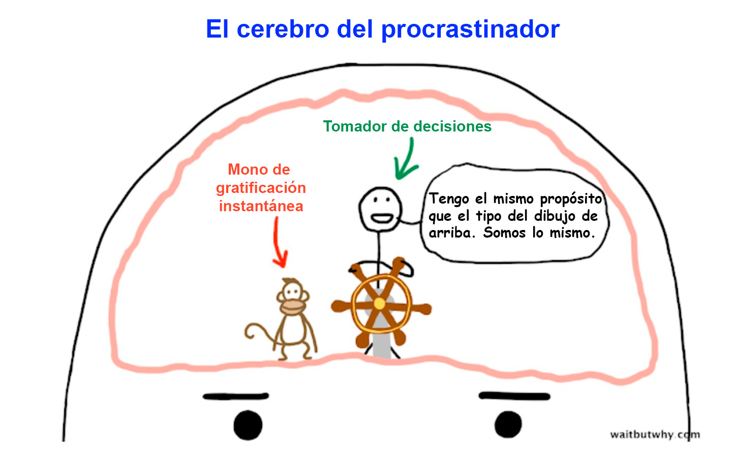 En lugar de despotricar en plan autoayuda sobre los peligros de la procrastinación, decidió explicar por qué sucede usando ilustraciones bonitas: el Mono de Gratificación Instantánea, El Monstruo del Pánico, etc.