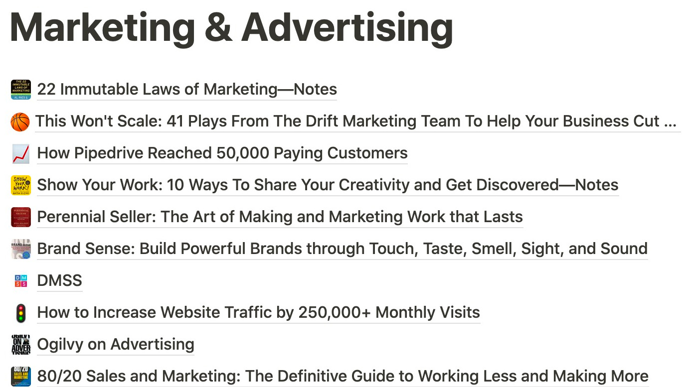 Personalmente, mantengo mi libro de lugares comunes en Notion. Aquí va un vistazo de cómo es: