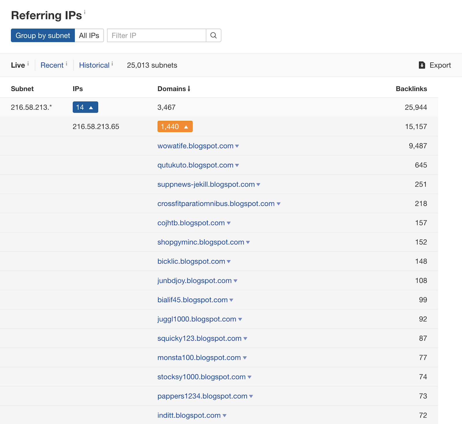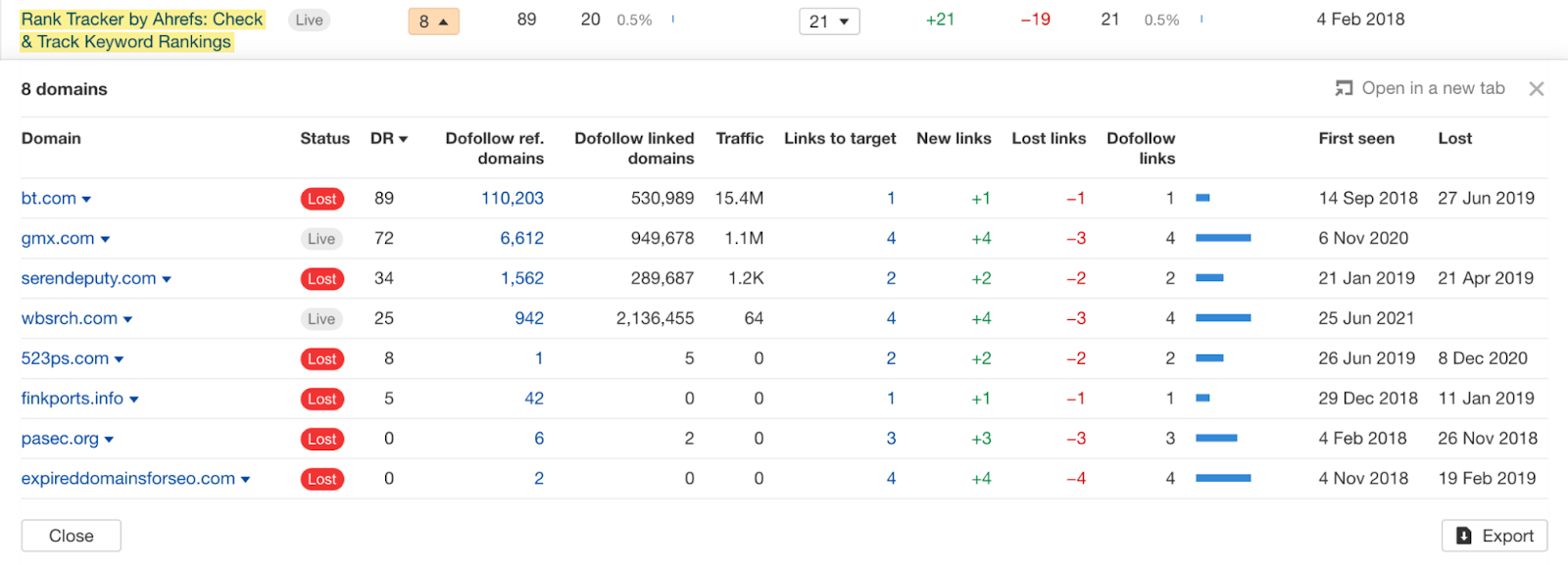 Eso sí, es importante destacar que un incremento en los dominios de referencia podría ser algo bueno. Por ejemplo, uno de tus posts podría haberse vuelto viral o podrías haber tenido éxito con una campaña de contacto por email (outreach).