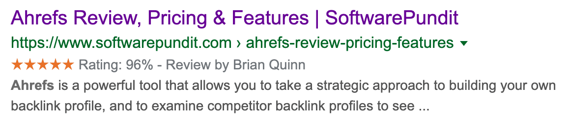 Sin embargo, las plataformas de reviews no son las únicas opciones. Google también puede mostrar resultados enriquecidos de reviews editoriales.