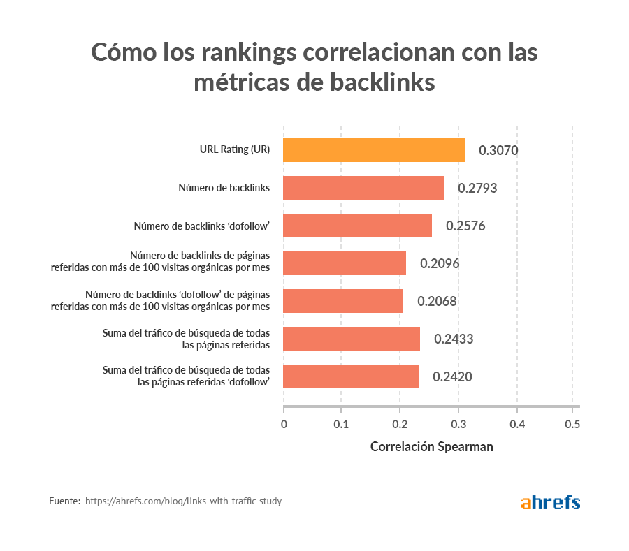 Además, según nuestro estudio de unos 14 millones de páginas web, la UR se correlaciona perfectamente con el tráfico orgánico.