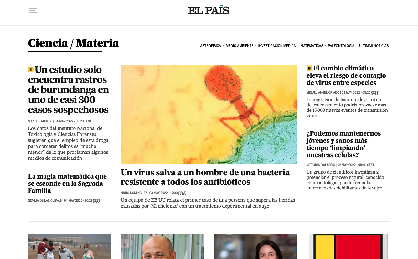 Según estoy escribiendo este artículo, cuando busco en Google “noticias ciencia España” el primer resultado que me sale es la página de El País: