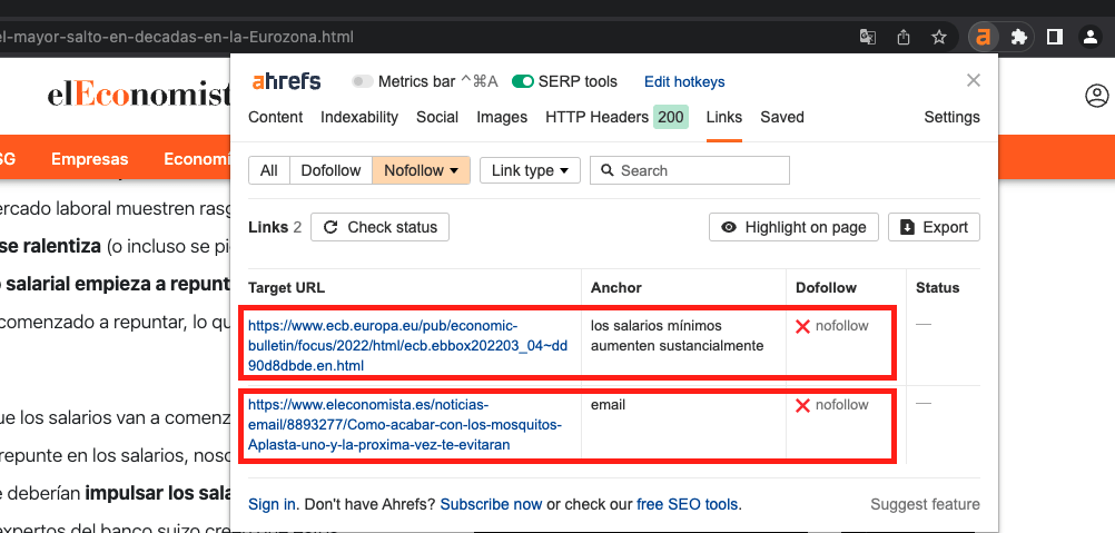 Para ello, puedes instalar nuestra barra de SEO que, entre otras cosas, resalta los enlaces nofollow en la página.