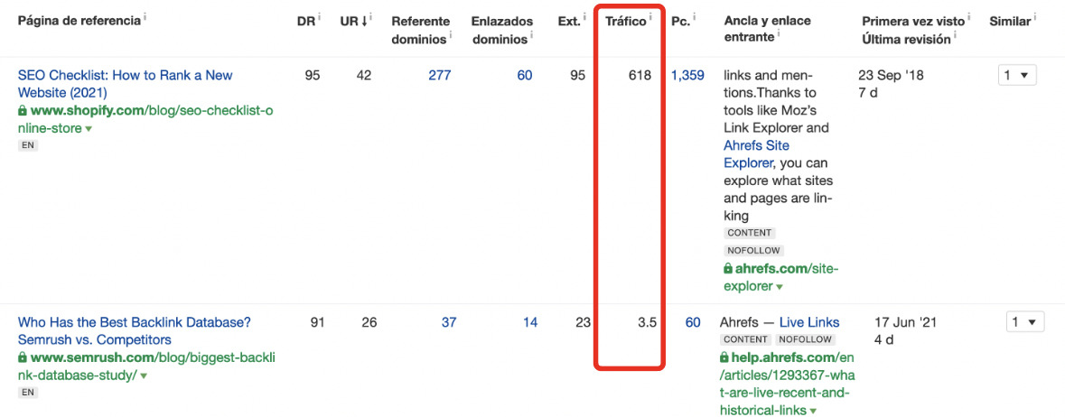 Esto significa que los enlaces de páginas con mucho tráfico orgánico tienen más peso que los enlaces de páginas con poco o ningún tráfico orgánico.