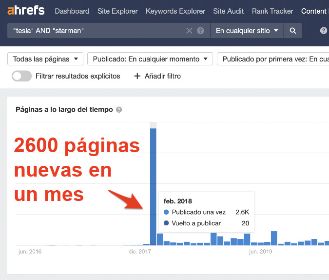 Por ejemplo, cuando Tesla lanzó un coche al espacio en 2018, hubo un montón de artículos que mencionaron a Tesla.