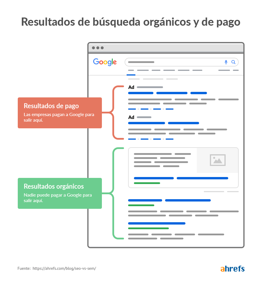 Los resultados de búsqueda pagados aparecen antes y, a veces, también después de los resultados orgánicos.