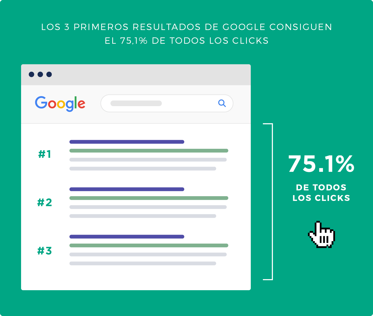Primero, la mayoría de los clics orgánicos van a las primeras posiciones.