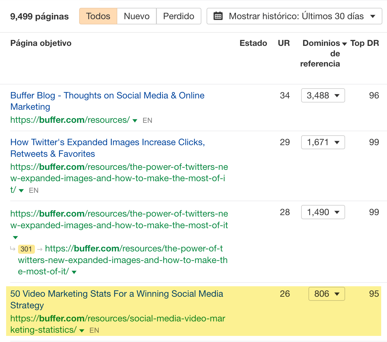 Puedes profundizar aún más y saber qué partes del contenido atrajeron más backlinks.
