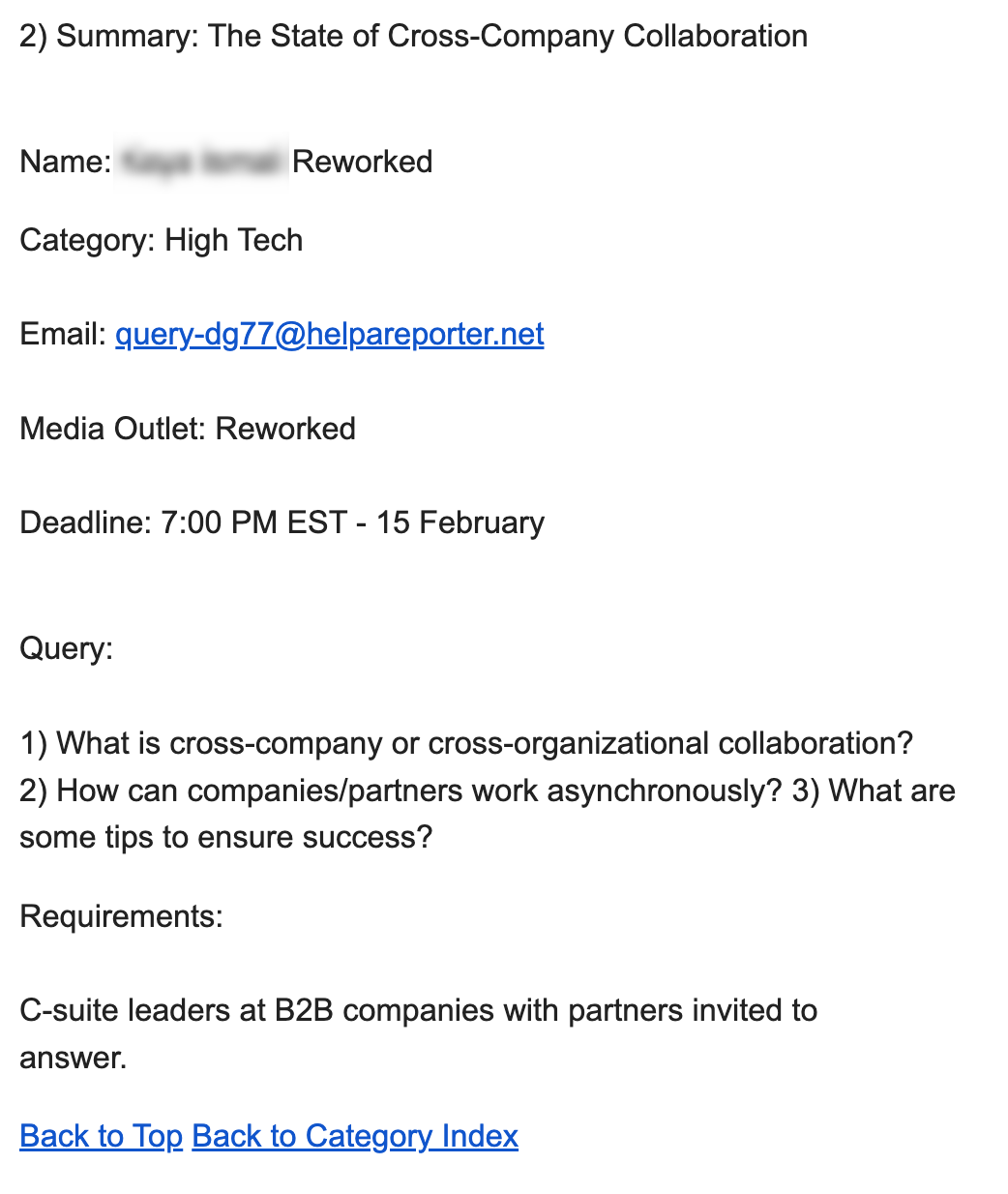 Algunas de ellas proceden de servicios como HARO (Help a Reporter Out), donde los periodistas se limitan a publicar solicitudes de citas.