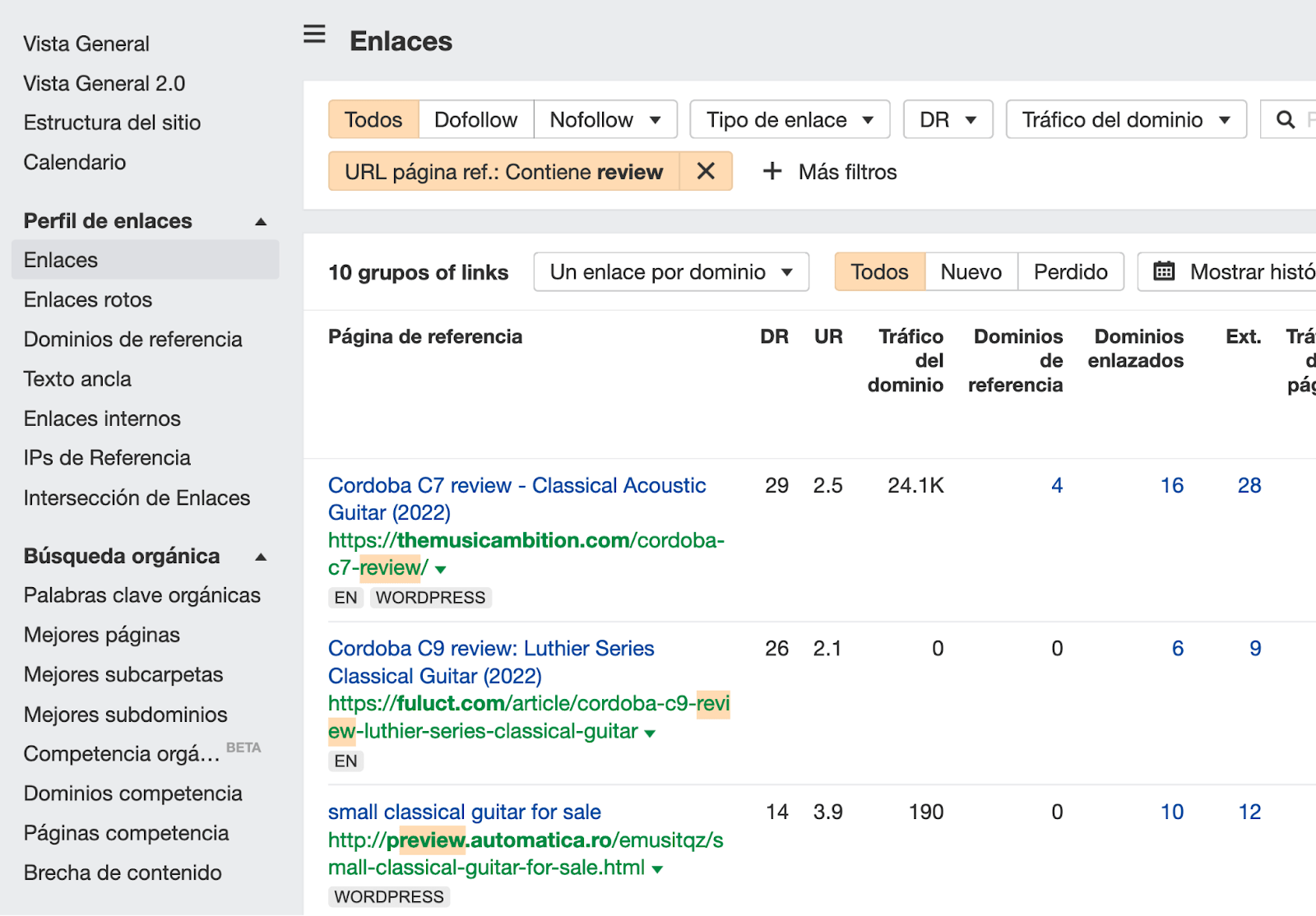 Puedes encontrar oportunidades que se ajusten a tus necesidades analizando los backlinks:
