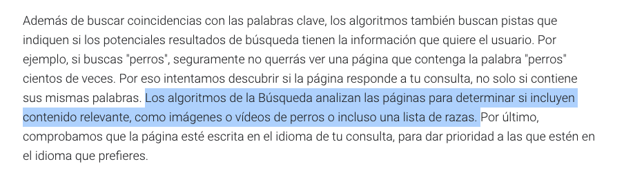 Google dice que esto les ayuda a “entender el contenido de la página”.