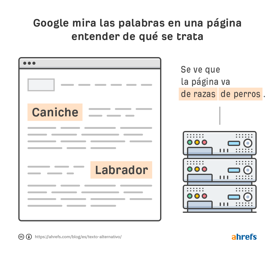 Por ejemplo, si la página menciona caniches, labradores y Golden Retriever, entonces Google sabe que se trata de razas de perros.