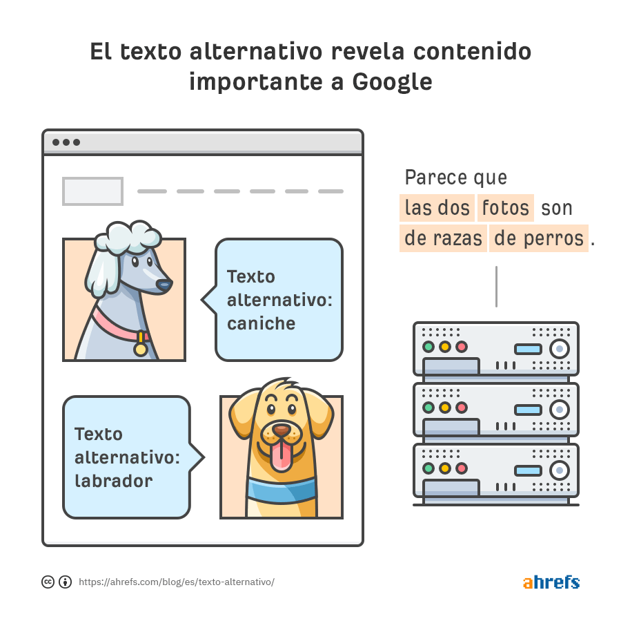 El uso de texto alternativo ayuda a Google a comprender estas imágenes, lo que conduce a una mejor comprensión de tu página y su contenido.