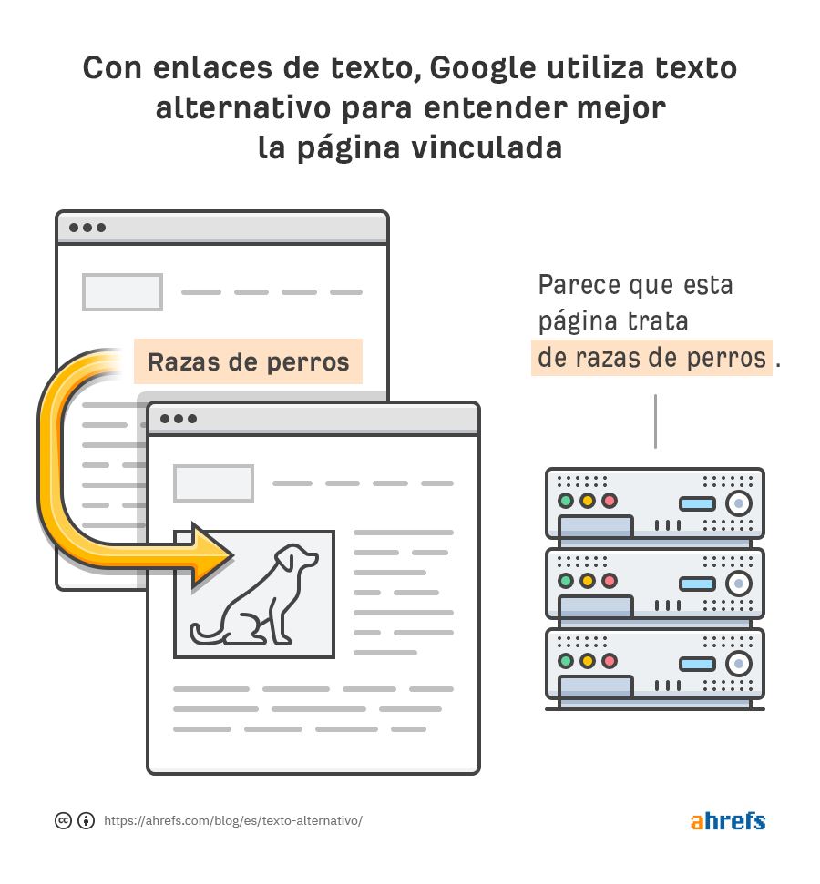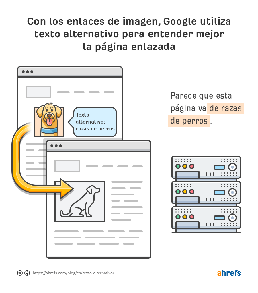 Si decides utilizar una imagen como enlace, completar su texto alternativo ayuda a Google a comprender mejor la página a la que está vinculando. Imagínate escribiendo un texto de anclaje para un enlace de texto.