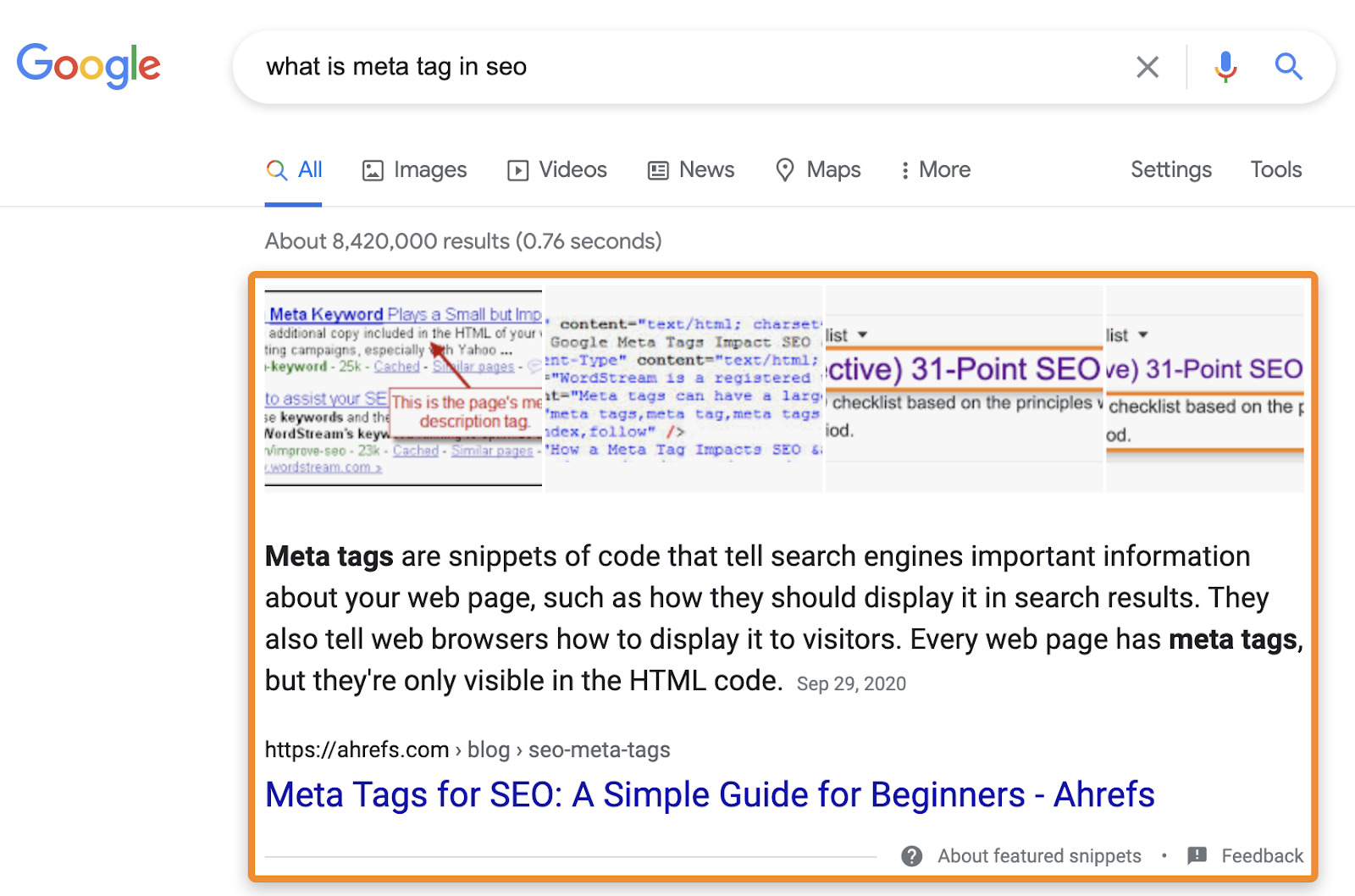 Las búsquedas informativas es donde alguien quiere encontrar información. Por ejemplo, si alguien busca “what is a meta tag in SEO” (qué es una meta etiqueta en SEO) es una búsqueda informativa porque obviamente están buscando una definición.