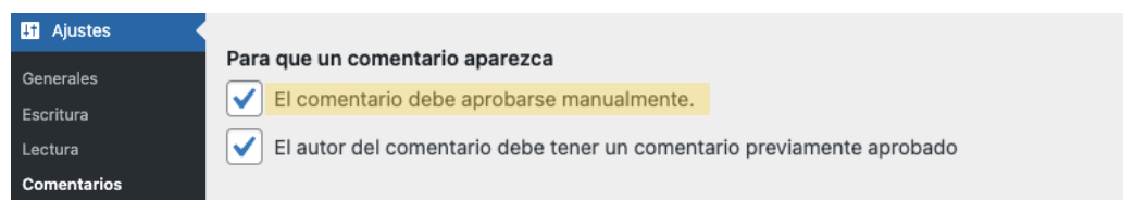 - Exige la aprobación manual de los comentarios del blog