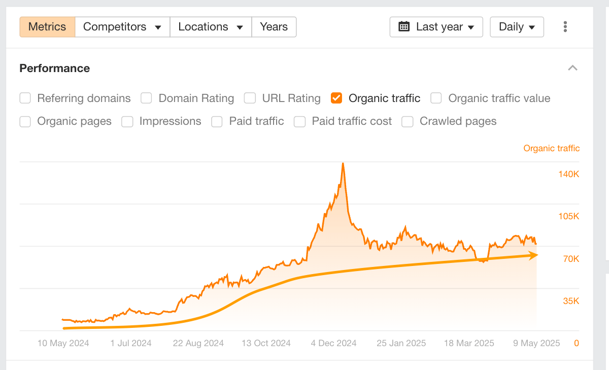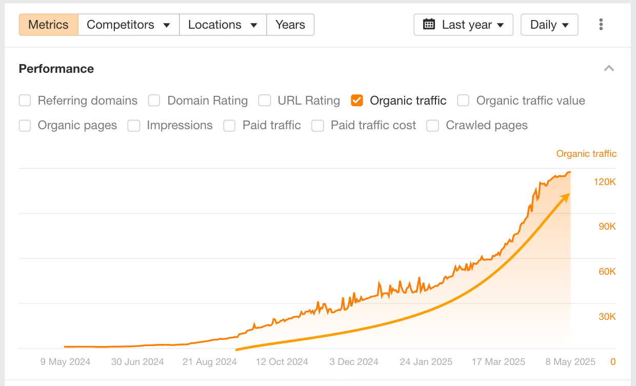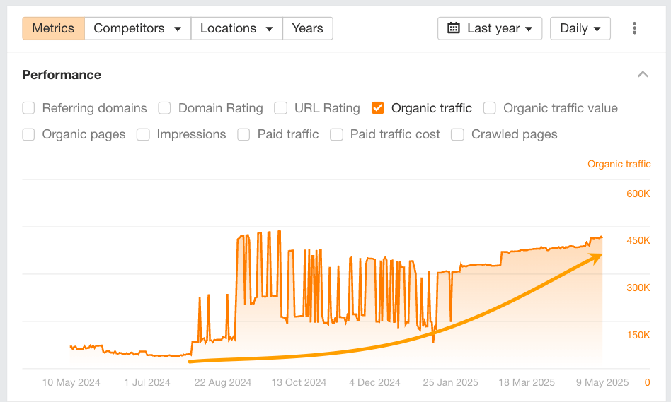 Their steady growth appears closely tied to multilingual content launches around July 2024 — likely expanding their organic reach across new language markets.