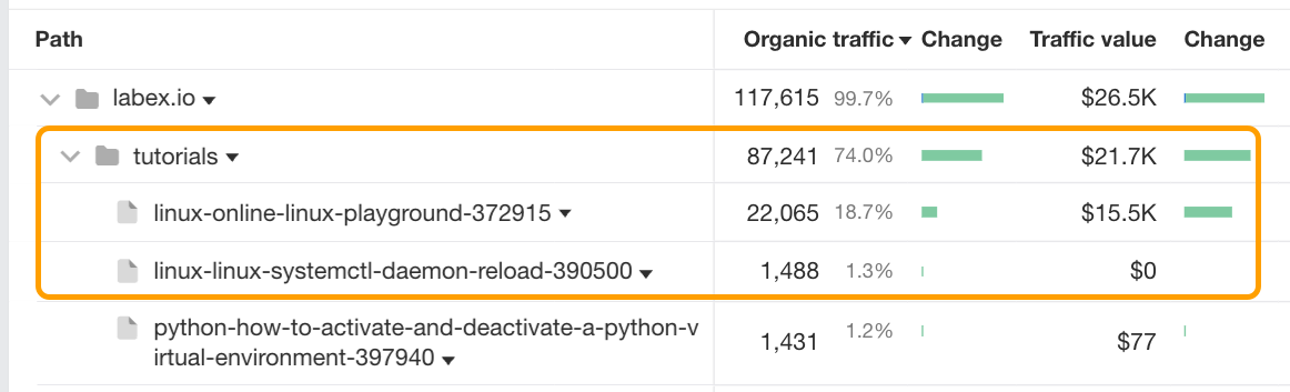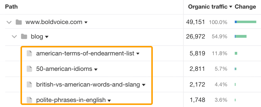 Like BoldVoice, their growth in the last year can largely be attributed to their blog strategy, with their posts accounting for over 97% of the website’s organic traffic.