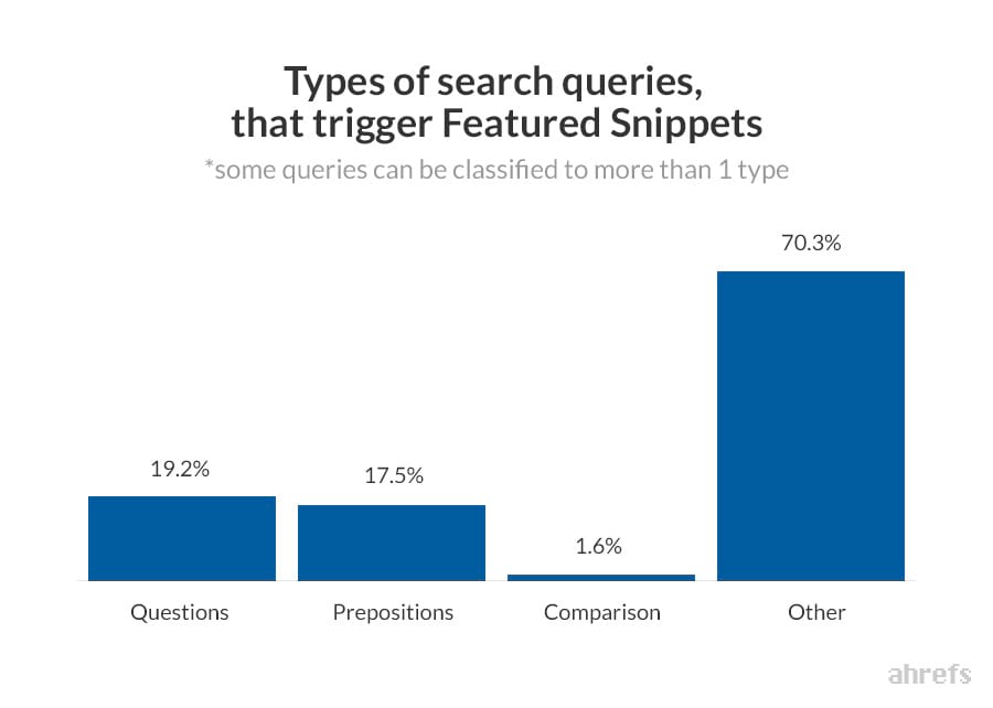 In other words, according to Ahrefs’ data, ~12.29% of search queries have featured snippets in their search results. (Which is quite a lot, if you ask me.)