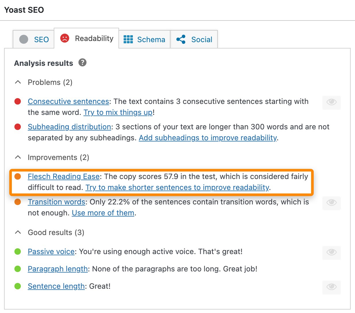 Don’t follow recommendations that tools give you based on the scores alone. The only time I’d suggest reevaluating your content upon a readability score is when it differs significantly from your usual scores.