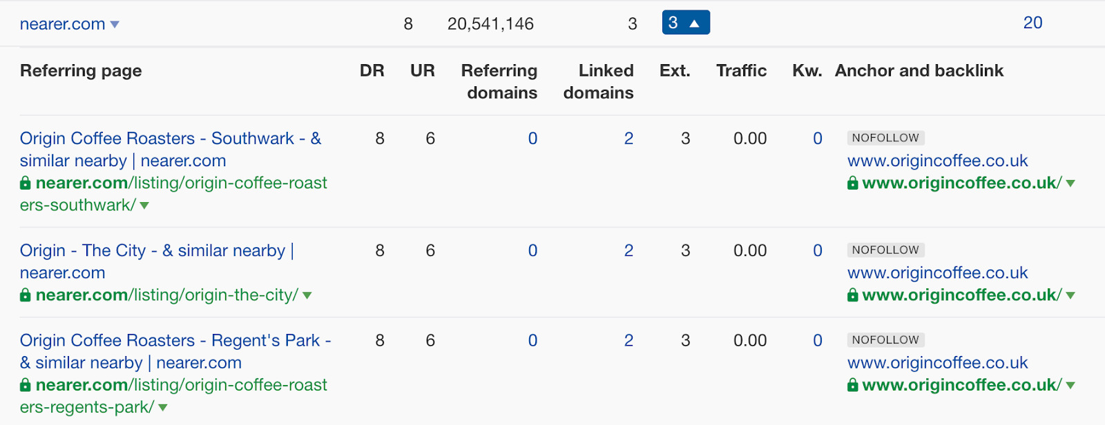 Examinez la liste pour voir s’il y a des annuaires. Par exemple, ce site ressemble à un annuaire et il envoie des liens aux trois concurrents.