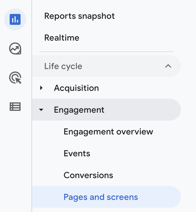 - Allez dans le rapport Pages et écran dans la section Engagement