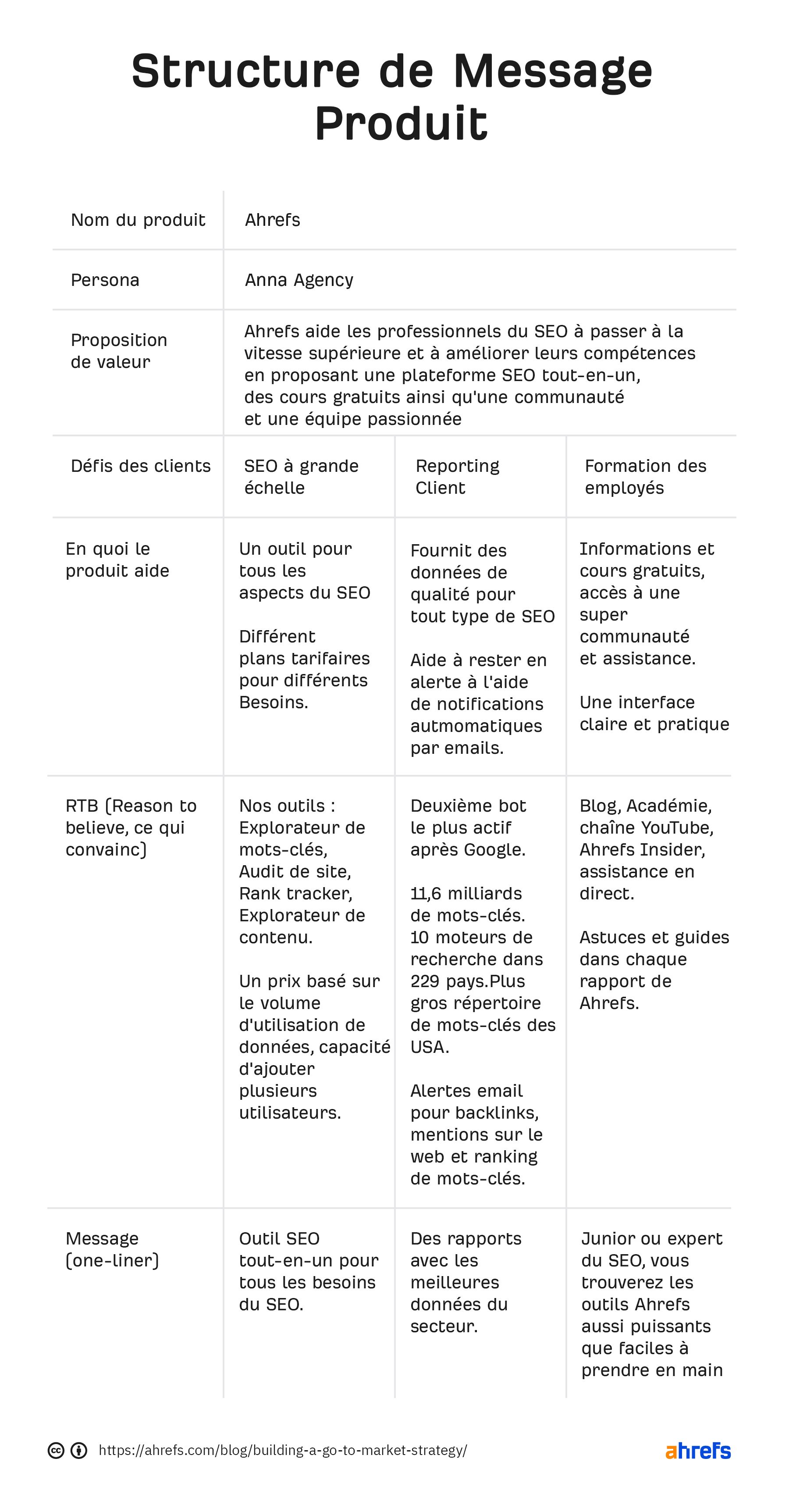 Voici un exemple de ce à quoi pourrait ressembler la persona d’un client de Ahrefs :