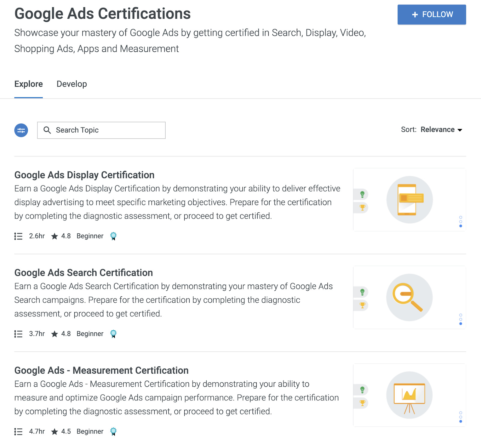 Skillshop de Google est une sorte d’académie en ligne qui propose des cours pour certains de ces principaux outils comme :
