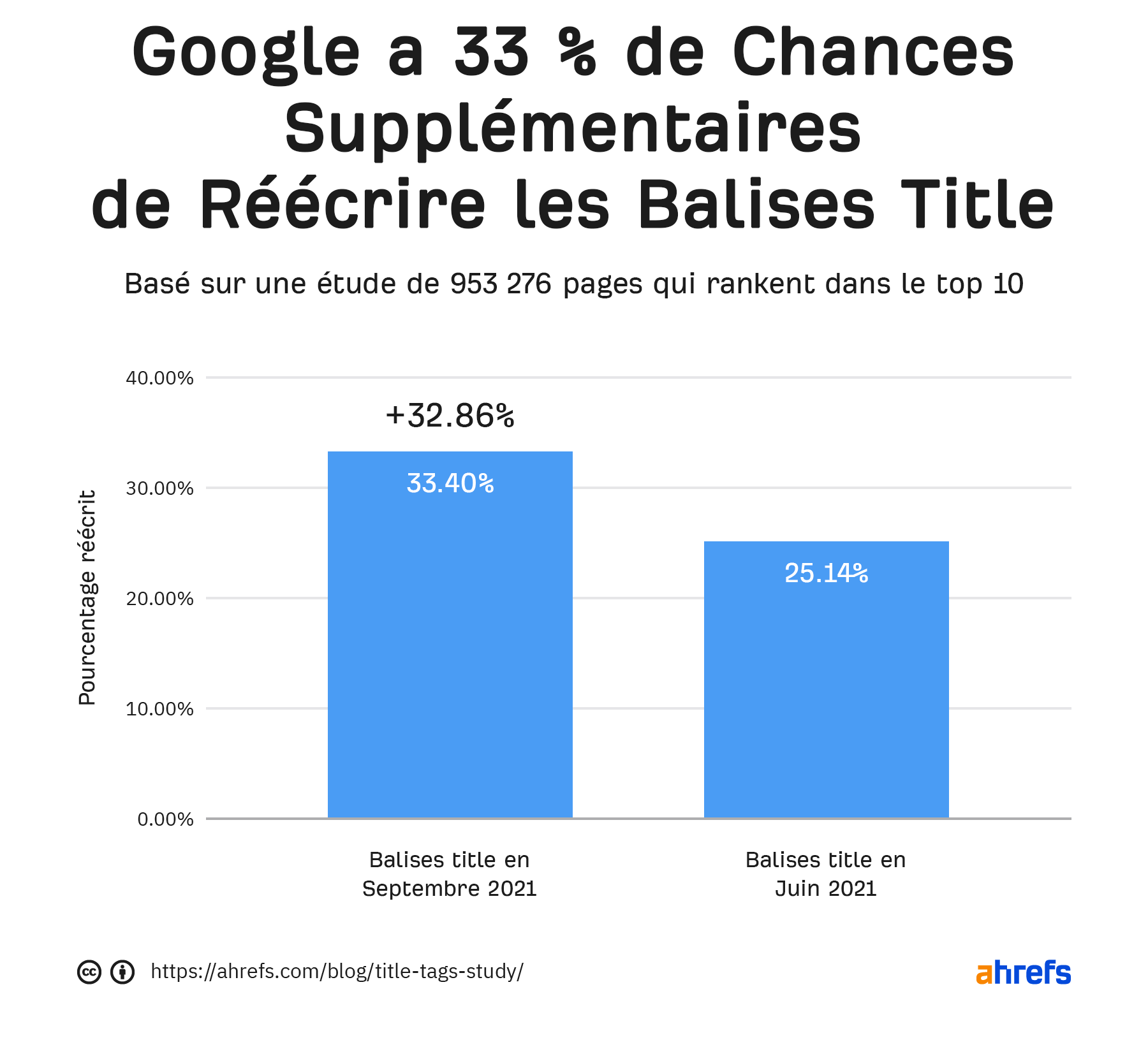 Google a maintenant 33 % de chances supplémentaires de réécrire les balises title