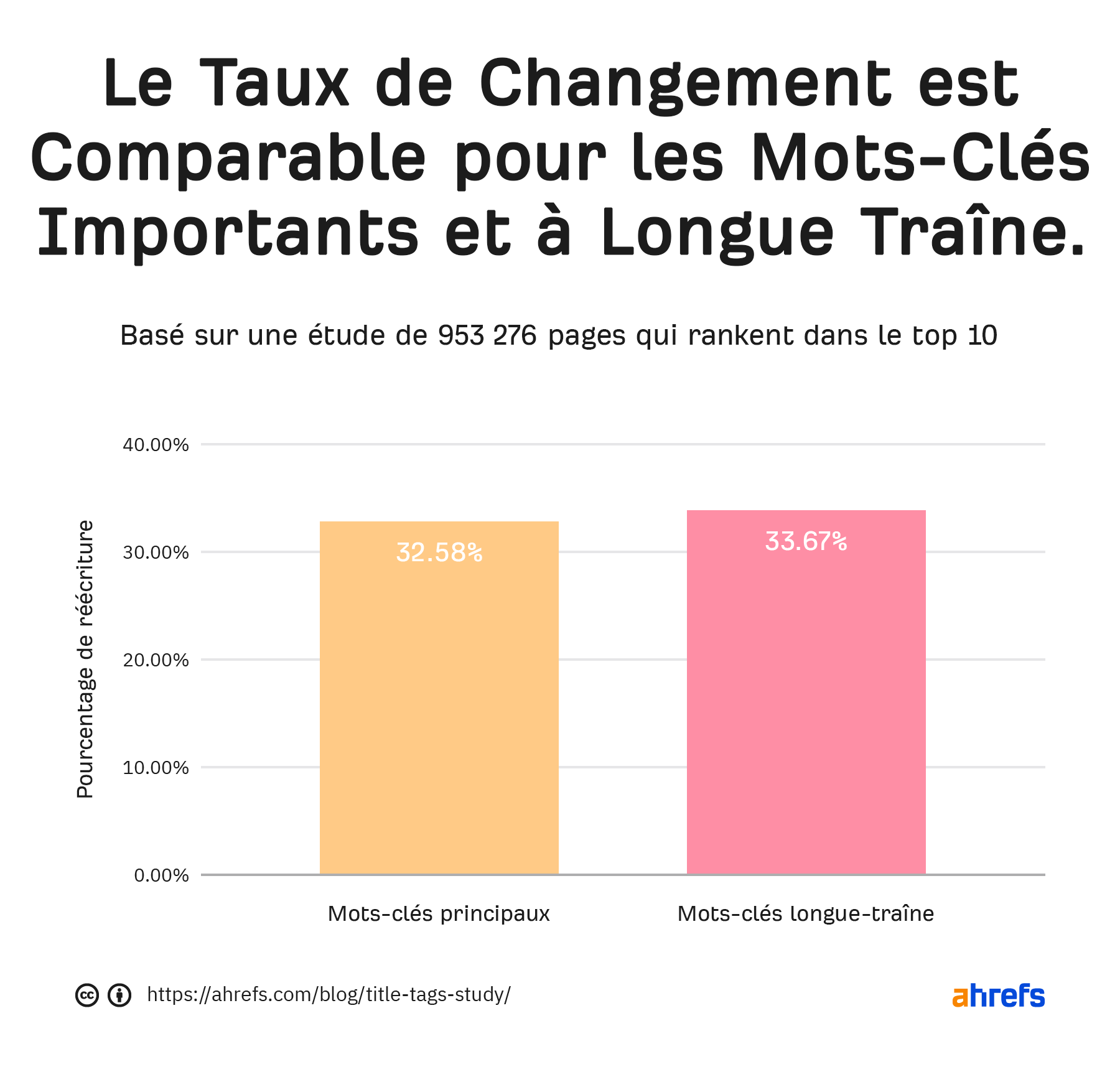 Le taux de changement est comparable pour les mots-clés importants et à longue traîne.