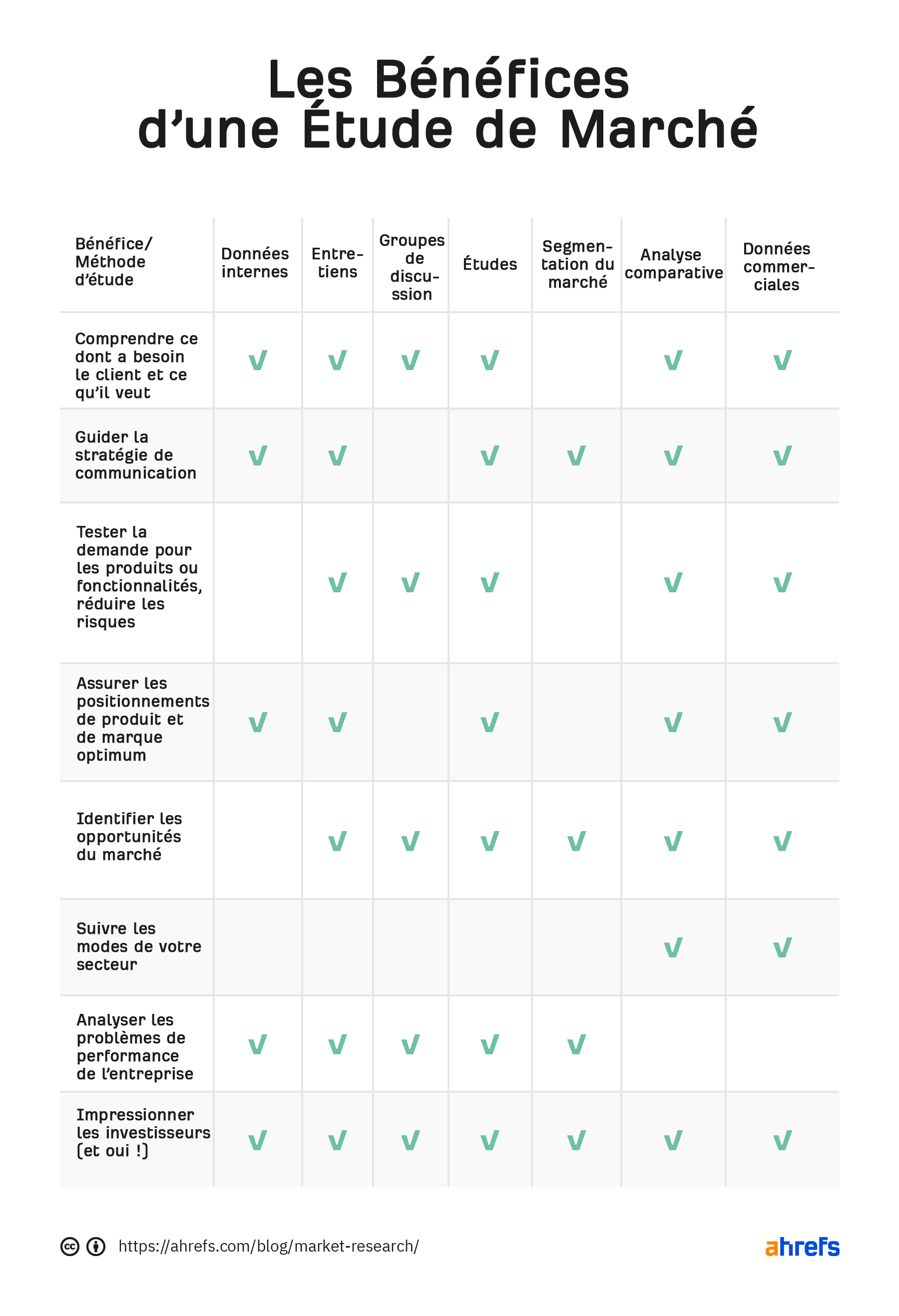Une étude de marché en 5 étapes : le tableau récap’