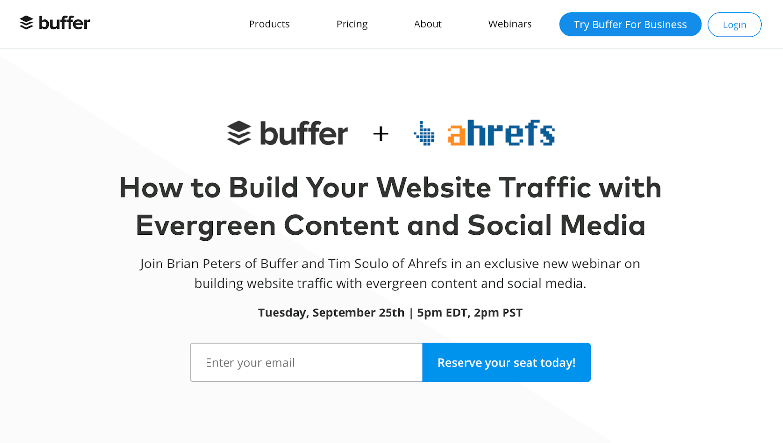 Taillez votre offre pour l’audience de votre partenaire. Par exemple dans notre webinaire avec Buffer, nous avons parlé de comment obtenir du trafic avec du contenu et du marketing de réseaux sociaux :