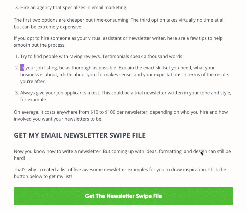 Attirez les lecteurs avec du contenu bonus gratuit à télécharger, en lien avec l’article. C’est ce que l’on appelle l’amélioration de contenu (content upgrade). Checklists, modèles de tableurs, modèles de documents et cours gratuits fonctionnent bien.