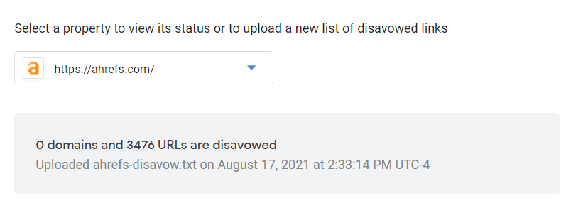 Plutôt que de créer des liens vers des pages, je me suis dit que la manière la plus simple de tester ceci serait de retirer des liens vers une page et de voir ce qui se passait. Avec l’aide de Joshua Hardwick, le responsable du contenu chez à Ahrefs, nous avons choisi trois articles et désavoué tous les liens vers ces pages pendant un mois, retirant ainsi la valeur des liens externes. Un mois plus tard, je les ai retirés du fichier de désaveu, ce qui aurait dû restaurer la valeur de ces liens.