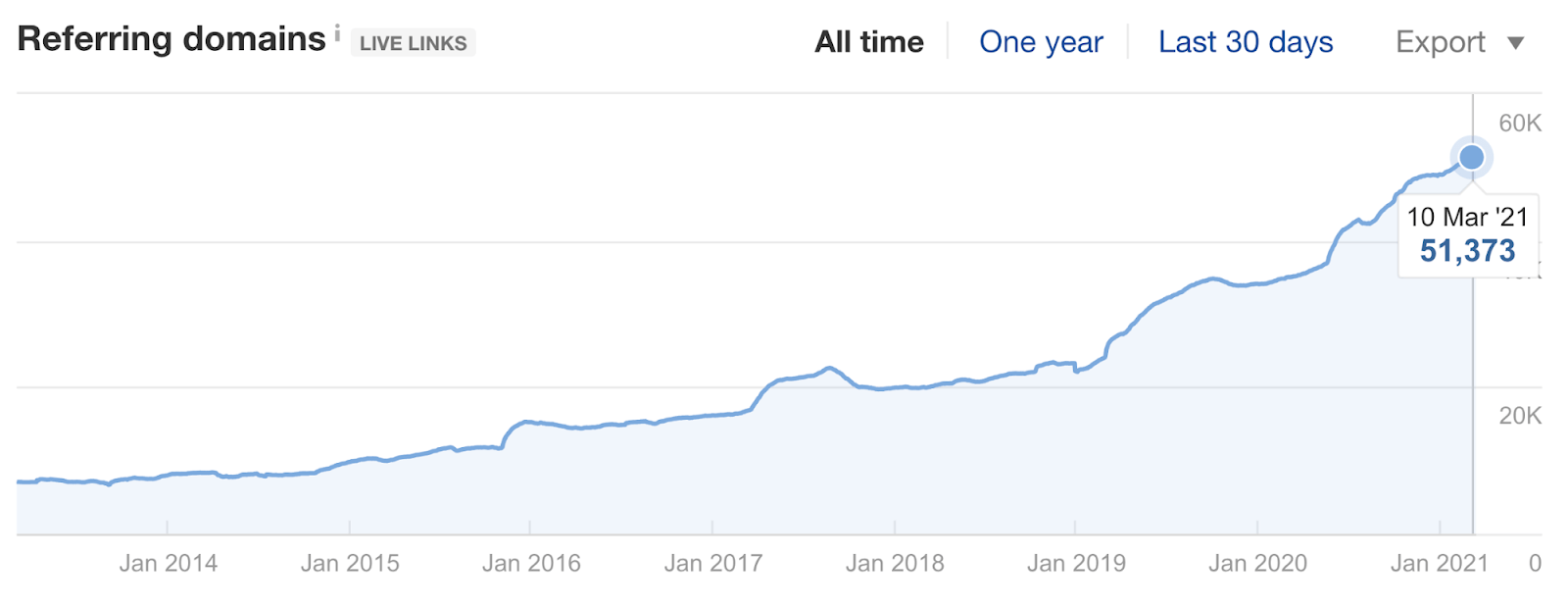 Vous pouvez suivre l’évolution des domaines référents vers n’importe quel site dans l’Explorateur de Site.