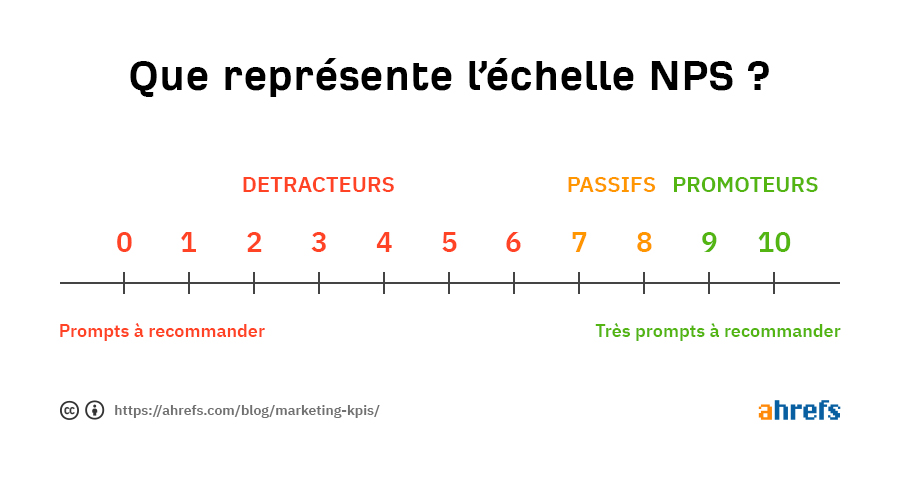 Les notes vont de 0 à 10. Toute personne qui note entre 0 et 6 est un détracteur, 7 ou 8 est passif, 9 ou 10 est un promoteur.
