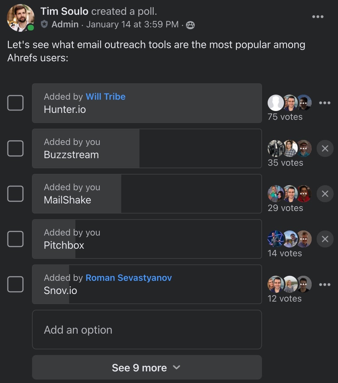 Une autre stratégie est de construire sa propre communauté, des gens qui seraient ravis d’avoir une notification pour toutes vos publications. Chez Ahrefs nous proposons trois options :