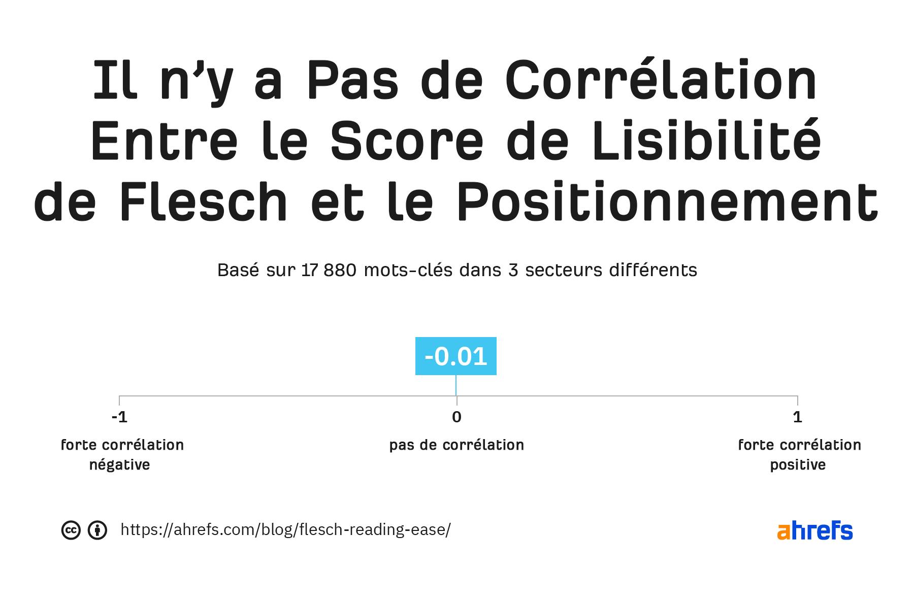 Cela est confirmé par notre étude sur 15 000 mots-clés dans laquelle nous n’avons vu a priori aucune corrélation entre le positionnement et le score de lisibilité de Flesch.