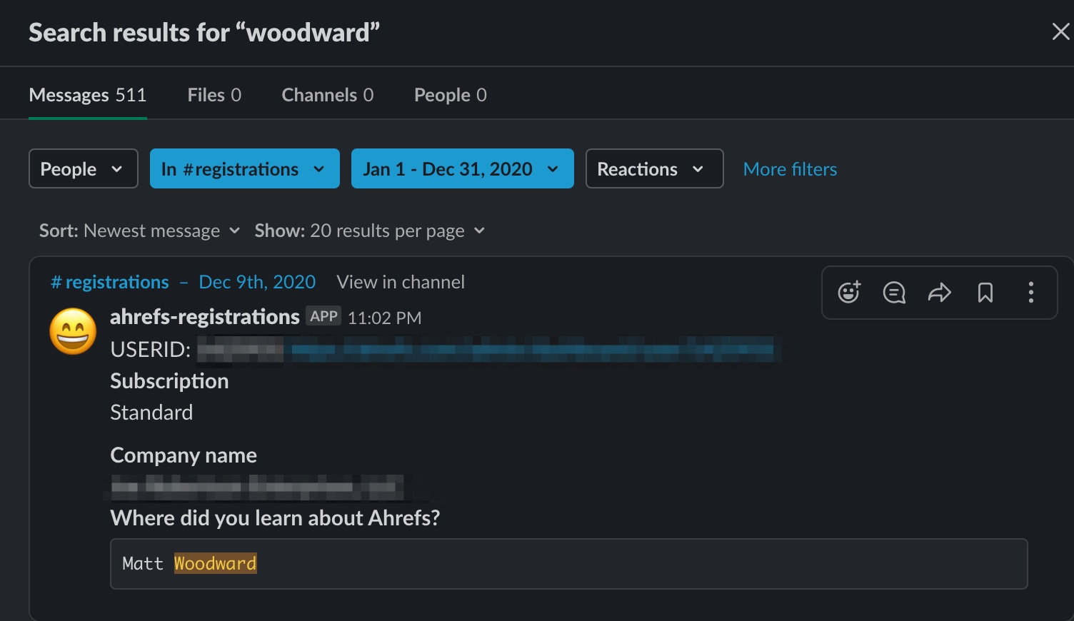 Le fait que plus de 14 000 nouveaux de nos clients en 2020 nous ont dit qu’ils se sont tournés vers Ahrefs suite à une recommandation de leurs amis est la meilleure preuve de l’importance du WoMM :