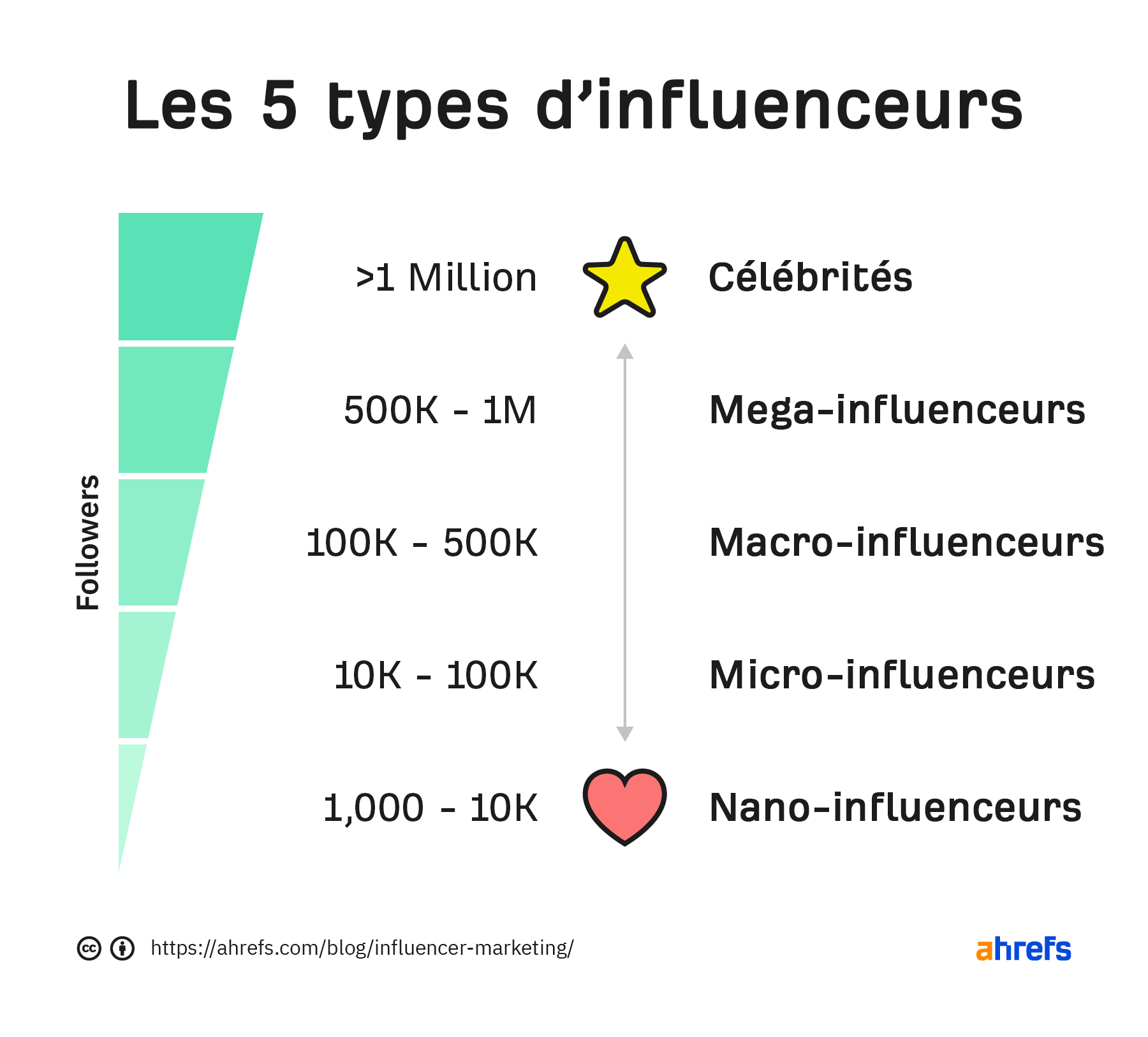 Pour généraliser, il y a cinq types d’influenceurs. On les groupe en fonction de la taille de leur audience.