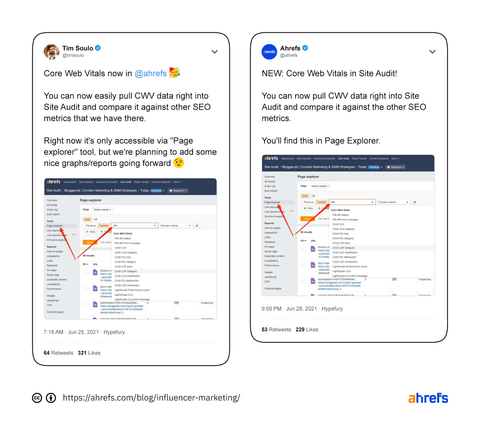 Tim est notre responsable marketing. C’est aussi l’un des plus grands ambassadeurs de Ahrefs. Même si notre compte Twitter de marque a 3x plus de followers que le sien, ses tweets obtiennent à chaque fois un meilleur engagement que les nôtres.