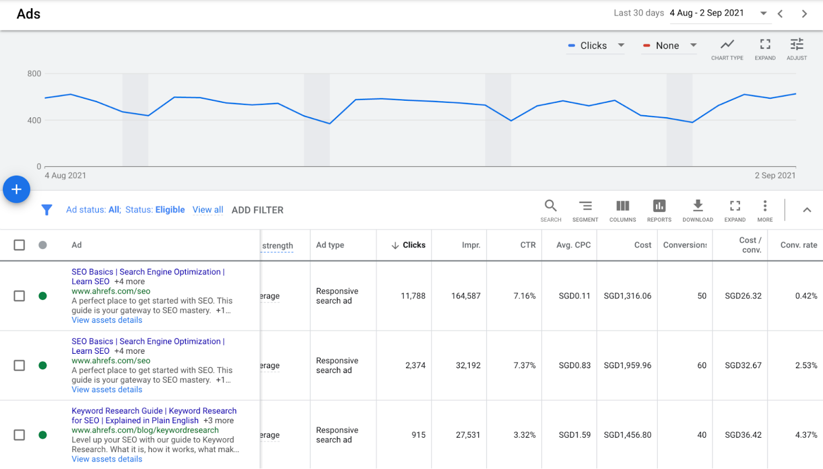 Lorsque quelqu’un clique pour se rendre vers ces pages, il y a des chances qu’ils ouvrent un compte gratuit pour les outils de webmaster Ahrefs ou un abonnement d’essais, car ils connaissent déjà les problèmes qu’ils ont besoin de régler et veulent une solution. Nous proposons ces solutions.