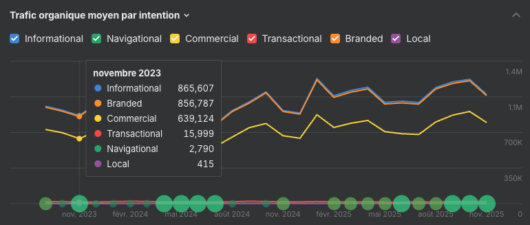 Cela signifie que vous ne voyez plus seulement où les mots-clés se positionnent, mais aussi si ces intentions génèrent réellement des visites.